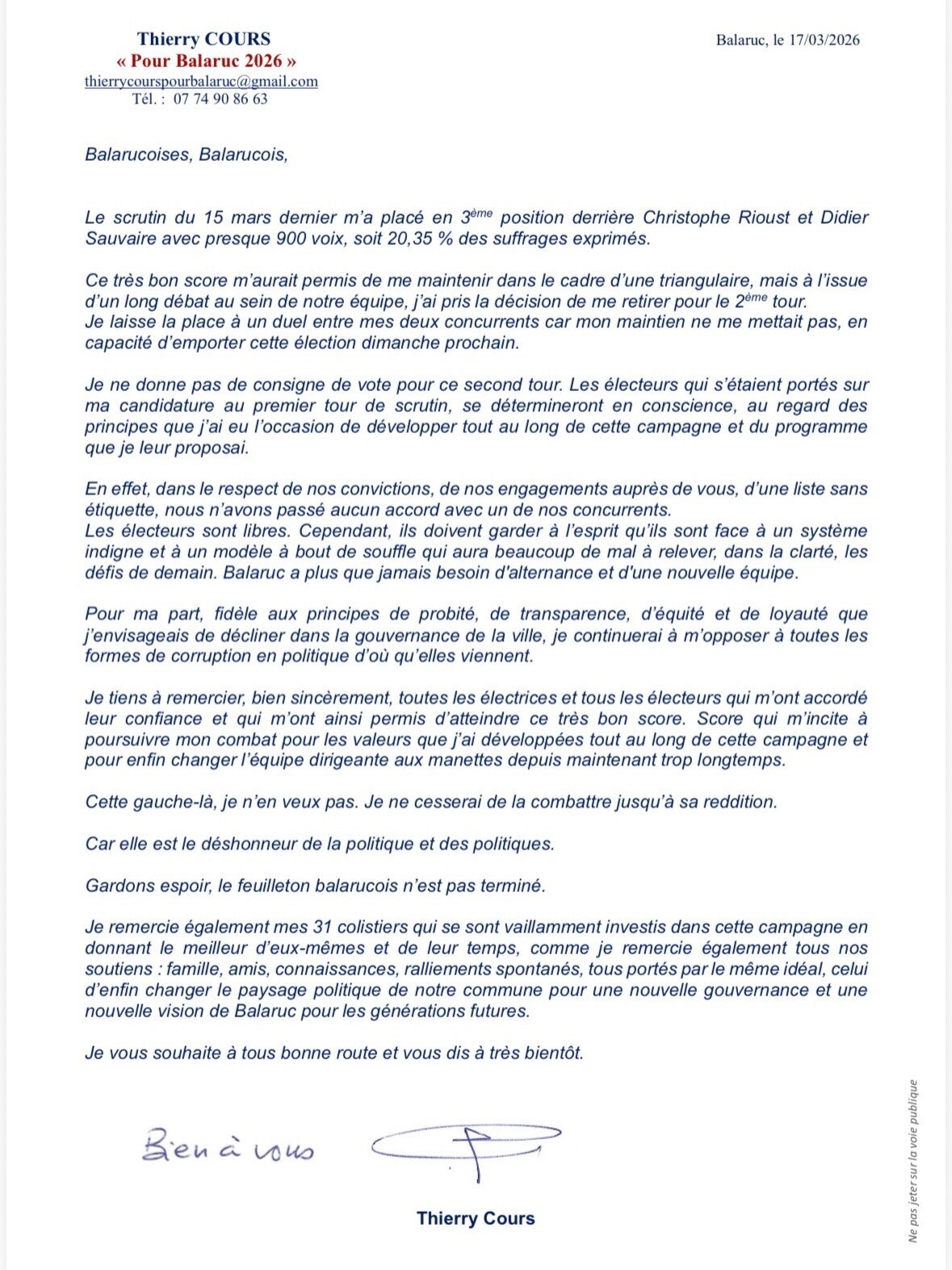 Fin de campagne - Notre lettre aux Balarucois - 17 mars 2026